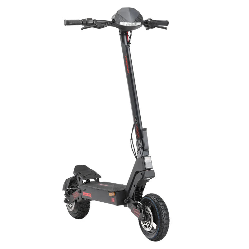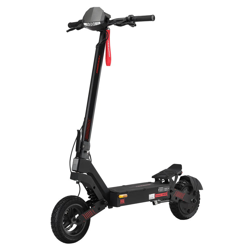 The scooter features front and rear mechanical disc brakes for reliable stopping power and spring shock absorptions for a smooth ride. Equipped with 10.5-inch off-road vacuum tires and a durable aluminum and steel frame, the GT2 is built to handle various terrains with ease. The touchable LED display and three-gear driving mode provide user-friendly control, making the Teewing GT2 a versatile and dependable choice for electric scooter enthusiasts.